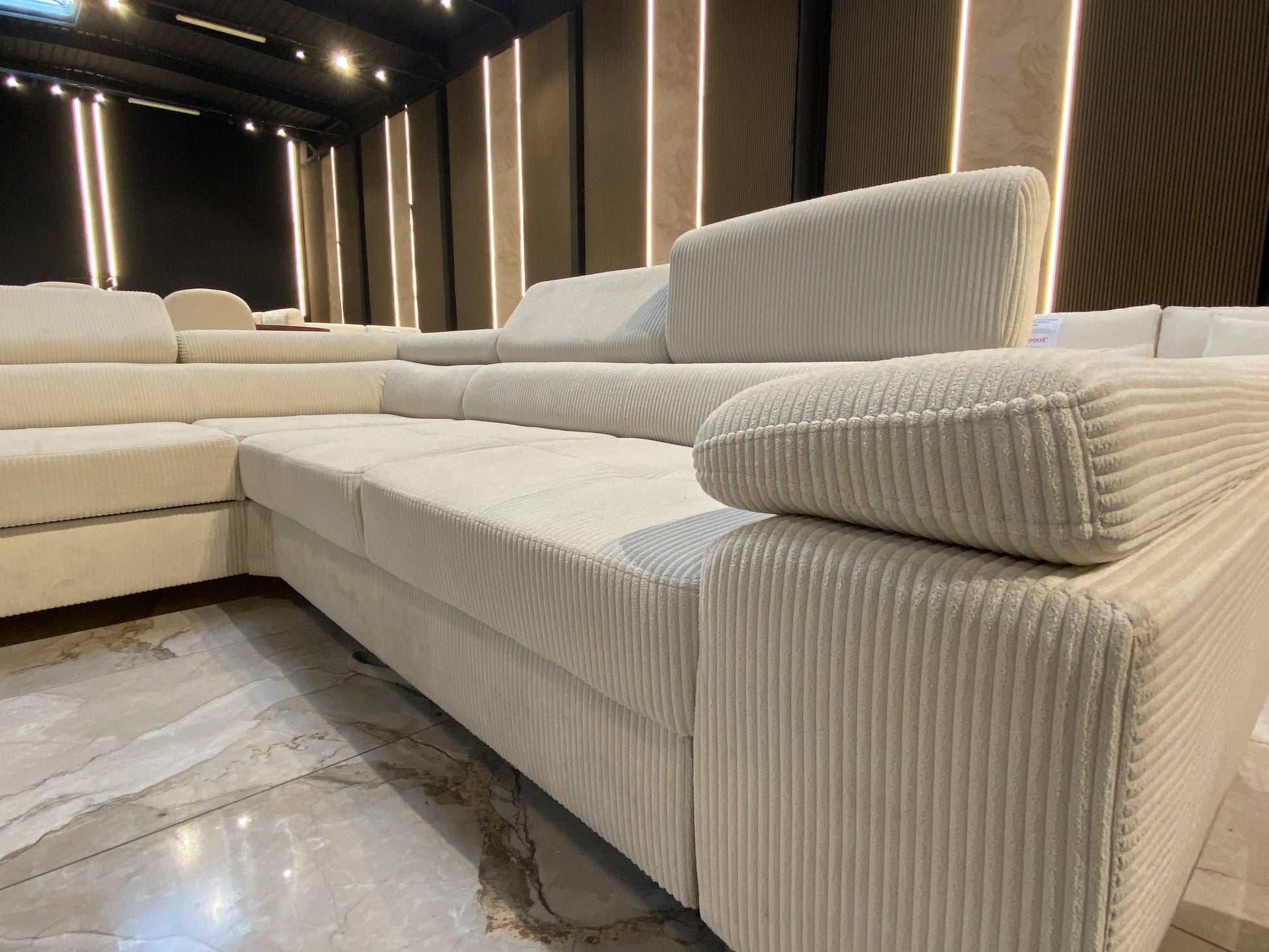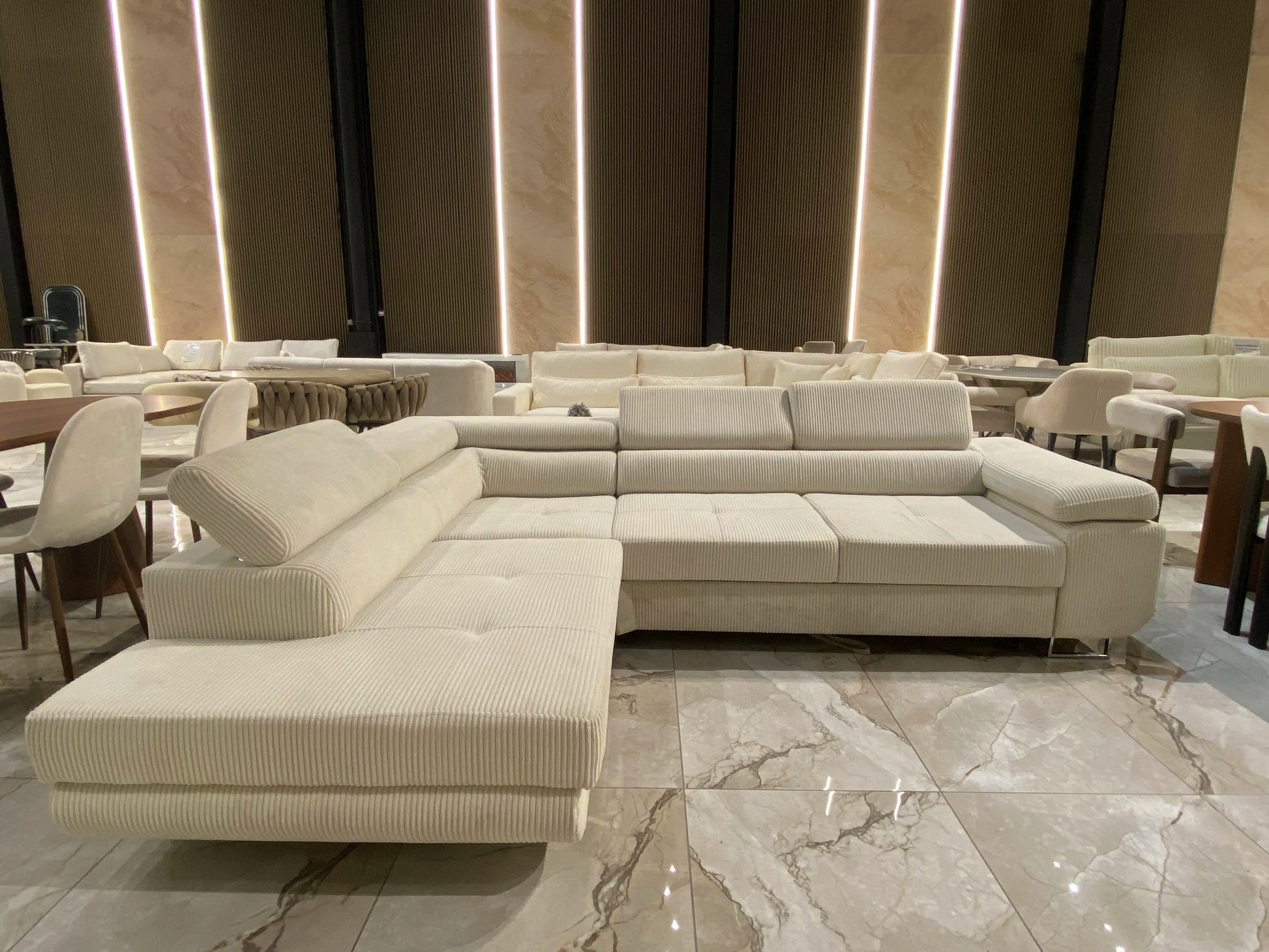Ajoutez une touche de luxe à votre salon avec le Canapé Toulouse Angle Droit en velours côtelé. Commandez dès maintenant et offrez vous le summum du confort et du style.
