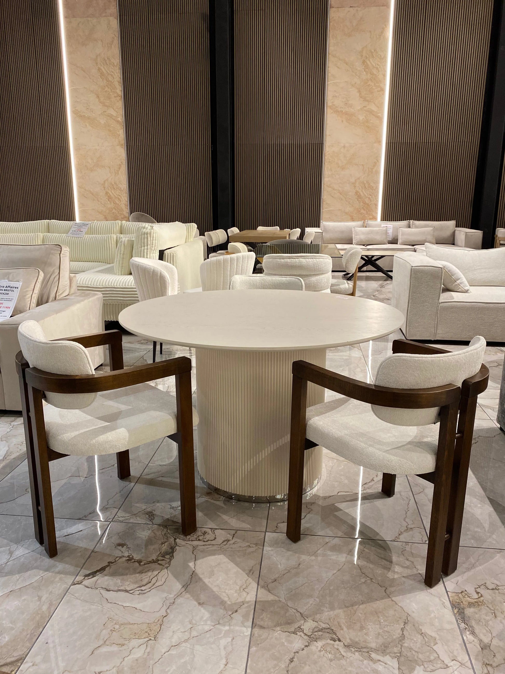 La Chaise Dragon incarne l'alliance parfaite entre élégance intemporelle et confort raffiné. Son assise généreuse en chenille, tissée dans une laine bouclée aux textures subtiles, invite à la détente tandis que ses pieds en noyer massif confèrent une prestance naturelle. Chaque détail révèle une attention particulière au design, transformant cette chaise en véritable pièce de caractère pour votre intérieur.