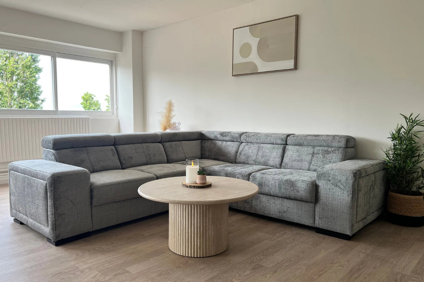 Canapé L sans angle marqué