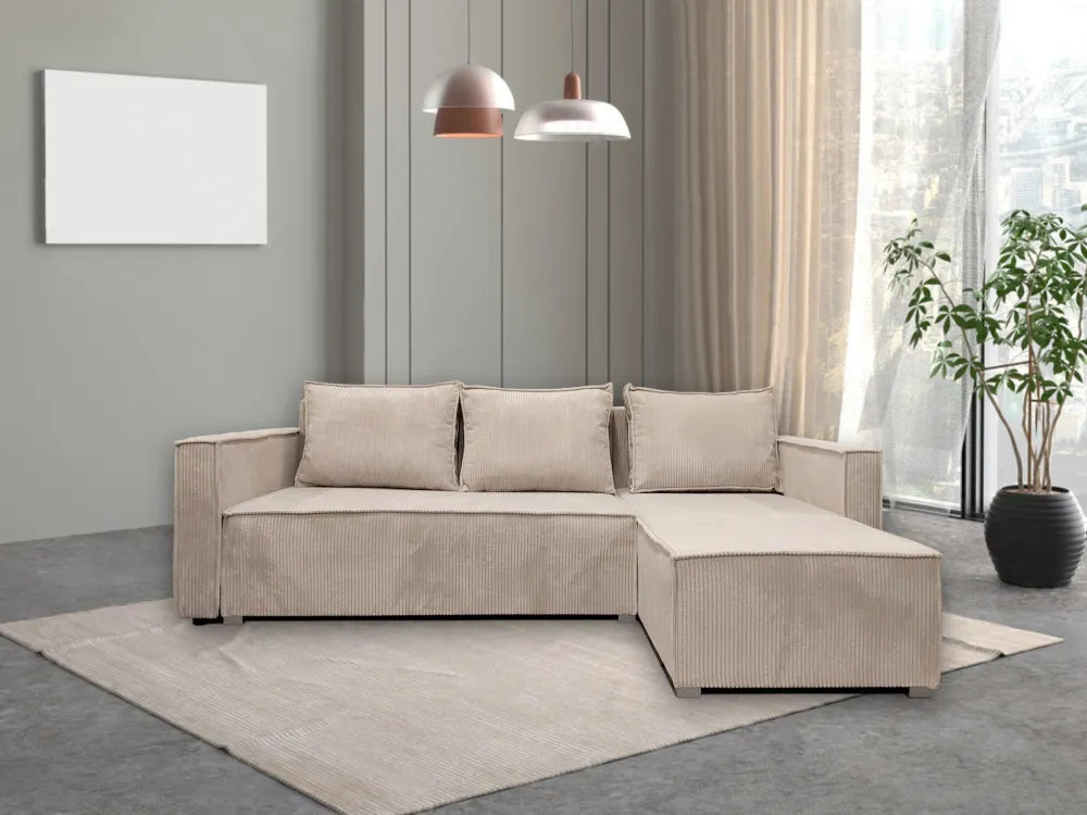 Le Canapé Angle Lucie représente une solution complète pour les espaces de vie contemporains. Construit autour d'une armature en bois MDF garantissant stabilité et longévité, il se distingue par son revêtement en velours côtelé gris de qualité supérieure. Ses deux fonctionnalités clés – le coffre de rangement dissimulé et le système convertible – répondent aux exigences des intérieurs multifonctionnels. La mousse haute résilience (30 kg/m³) assure un soutien optimal et un confort durable. Avec ses dimensions généreuses, ce canapé s'impose comme un investissement judicieux pour ceux qui recherchent performance, durabilité et élégance intemporelle dans un seul meuble.